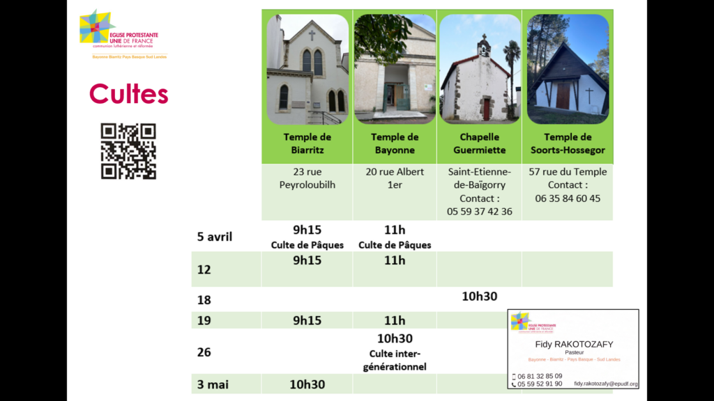Bienvenue à l’Eglise Protestante Unie de Bayonne, Biarritz, Pays Basque et Sud Landes !